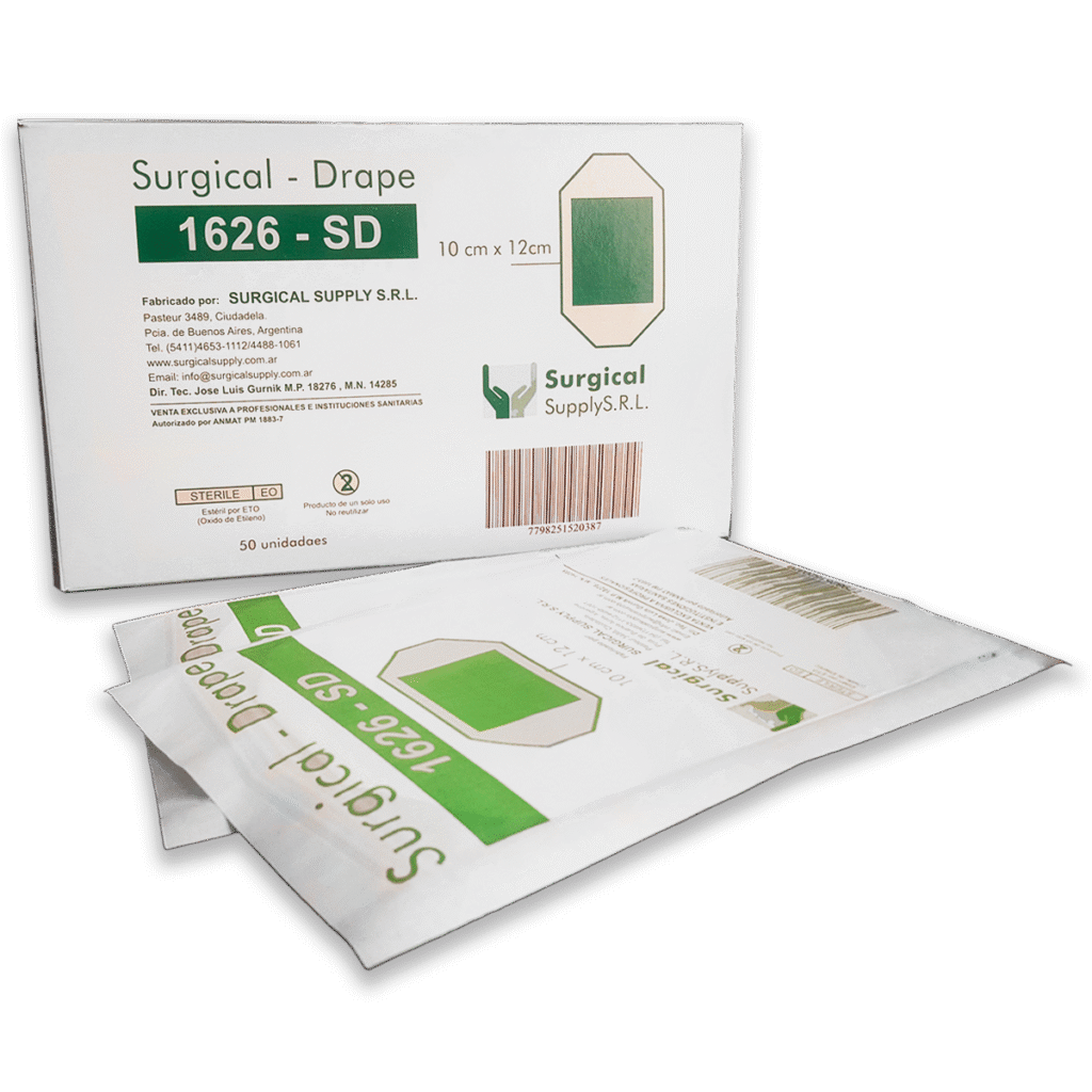 Presentación: 45cm x 60cm. Envasado individual en sobres estériles (Caja por 10 unidades).