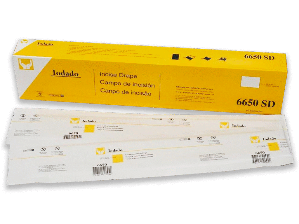 Uso previsto: Prevenir la migración de agentes patógenos a la herida quirúrgica. Especialmente indicado para cirugías prolongadas (más de 12 horas). El iodo ayuda a eliminar las bacterias generadas por la piel durante la intervención.