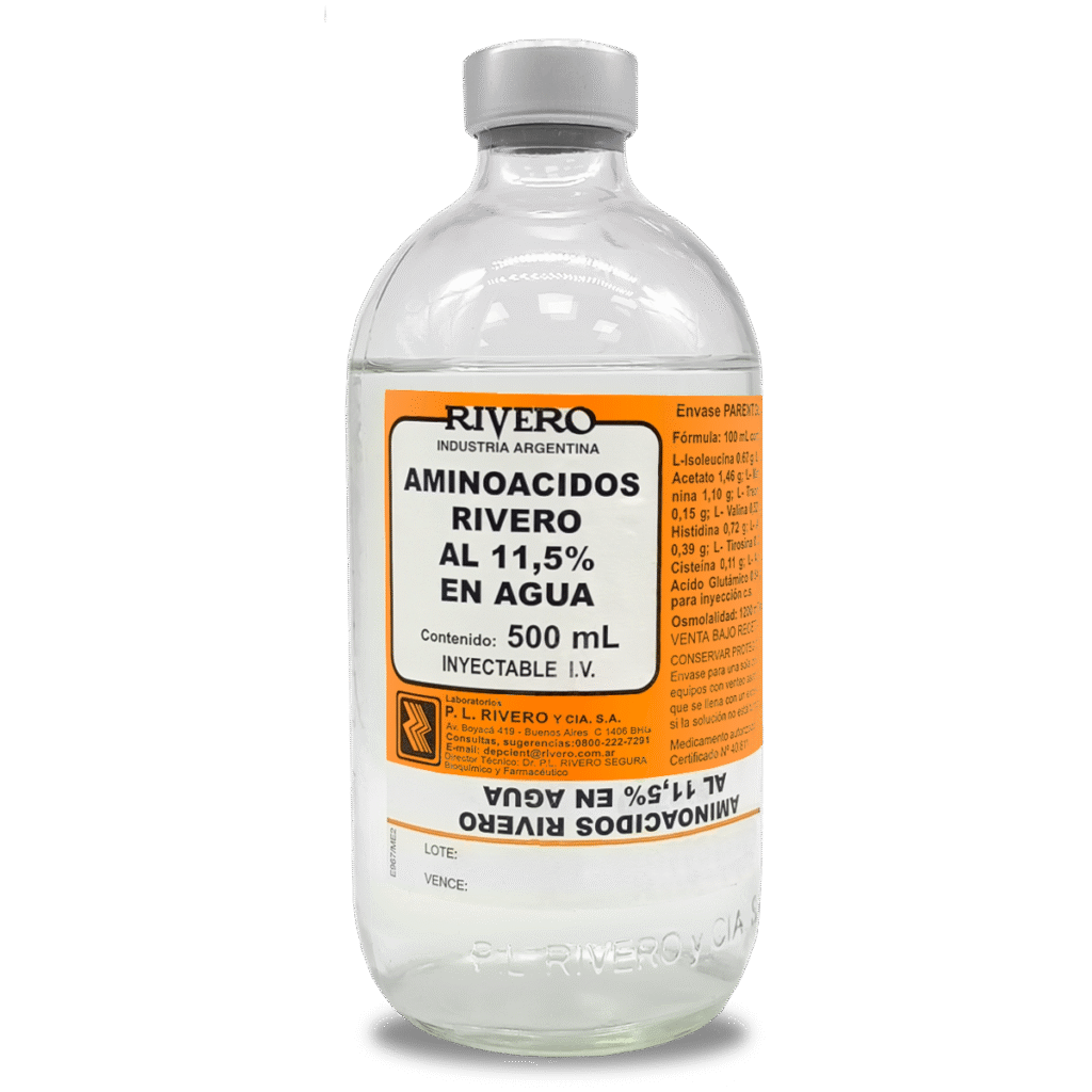 Presentación: Solución de aminoácidos al 11.5% en envase para perfusión (ej. 500 ml).