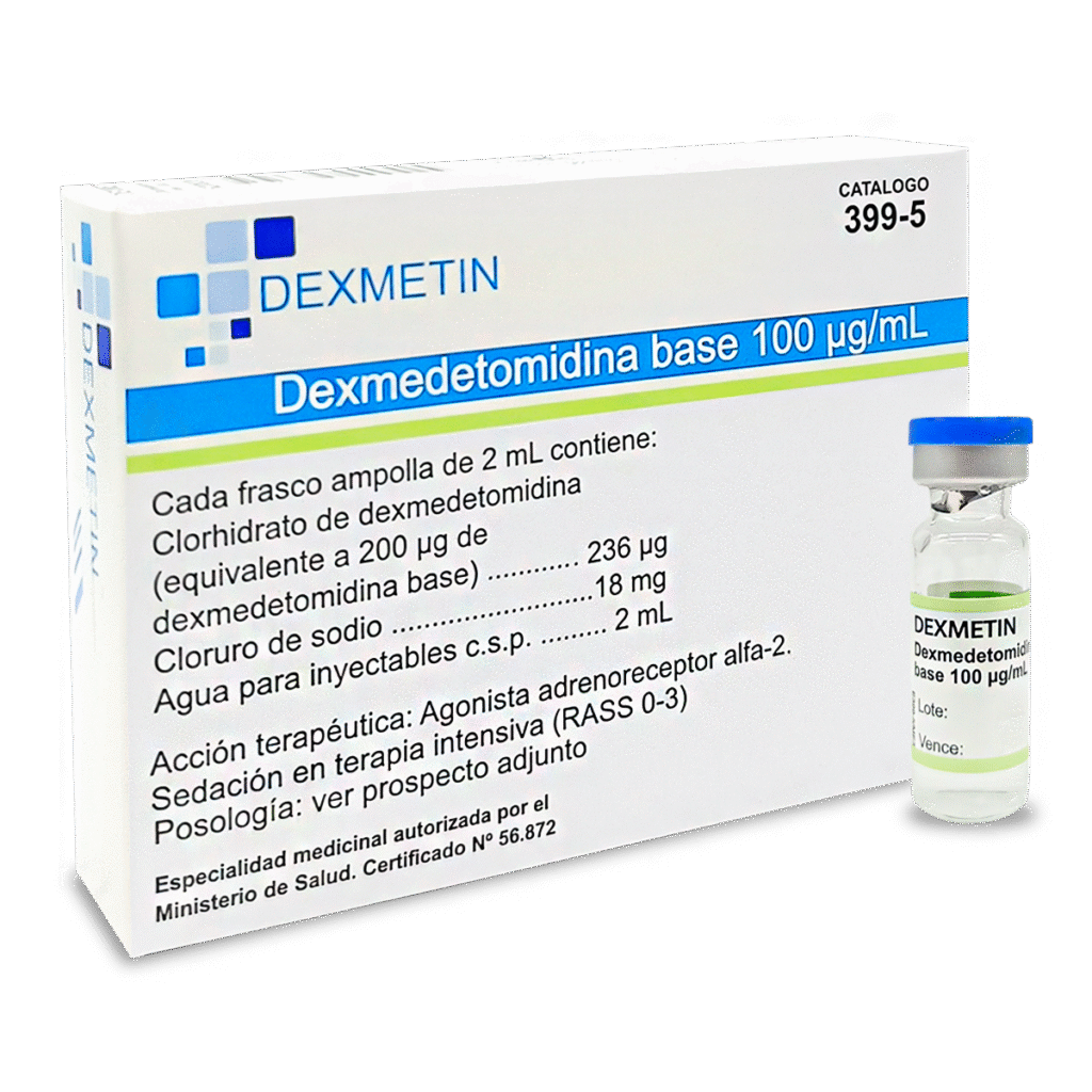 Clorhidrato de Dexmedetomidina 2 ml = 200 mg, Innovacion en sedacion consiciente, efectiva y segura con menor riesgo de Delirium. Caja de 5 ampollas.