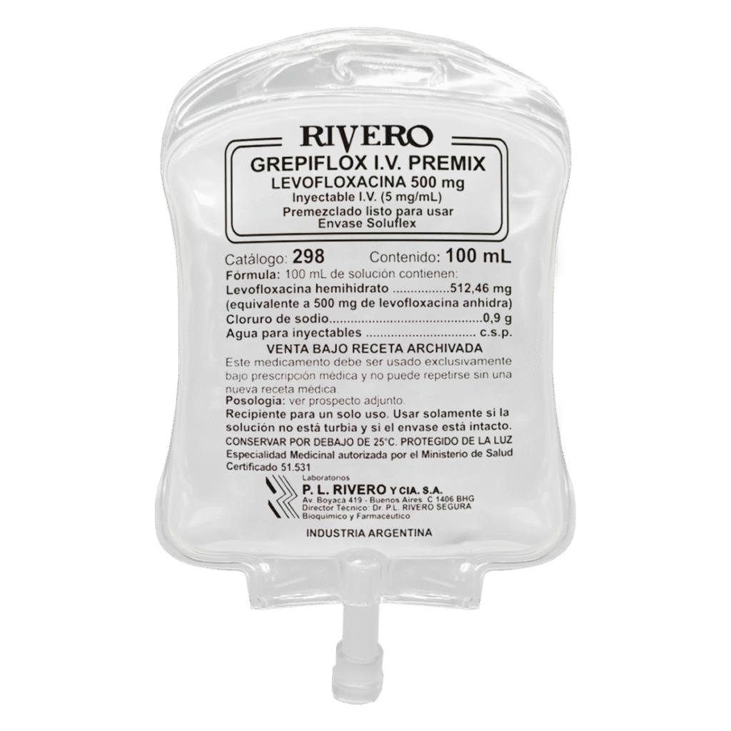 Composición: Levofloxacina 500 mg / 100 ml.