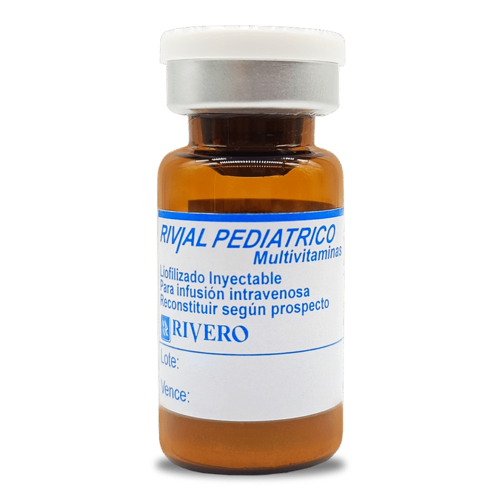 Las 13 vitaminas para nutrición parenteral en pediatria. Multivitaminas para infusión intravenosa en pediatria. Estuche con 5 frascos – ampolla con polvo liofilizado.